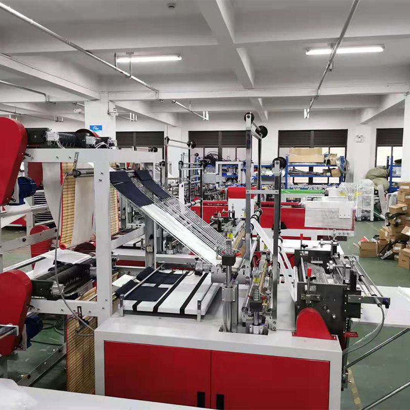 This high speed 4 lines heat sealing and cold cutting bag making machine is primarily used to produce biodegradable and plastic T-shirt shopping bags, as well as flat bags. Taiwan-made frequency brake motor is used as its main motor, which helps to reduce electricity consumption and enables speed control more freely.