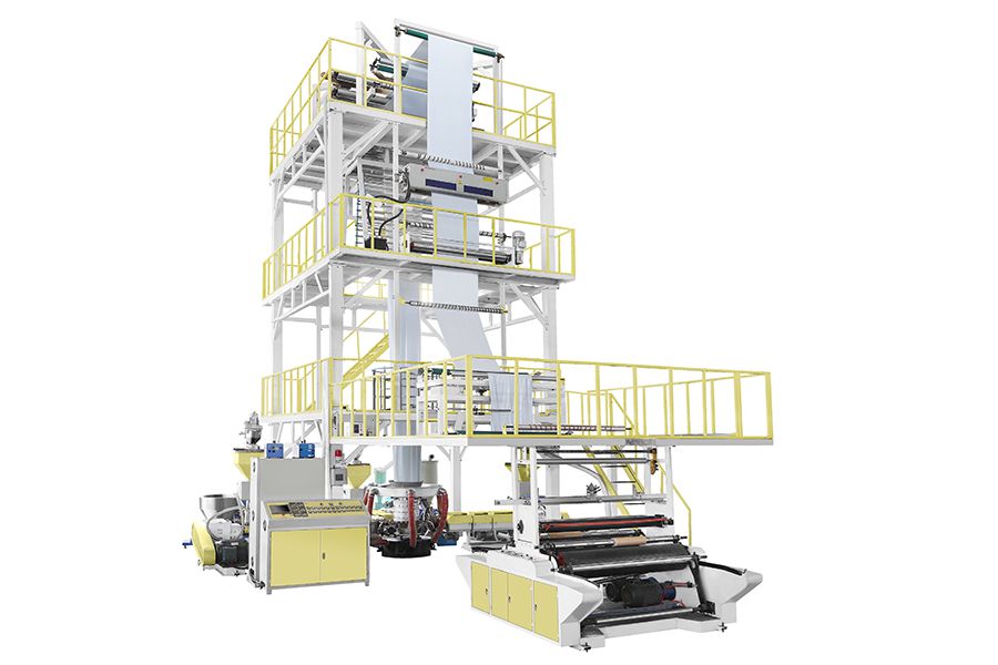 This three layer blown film machine is designed to produce a continuous 0.02 - 0.15mm-thick packaging film using LDPE, HDPE, LLDPE and MLLPE. It is best suited for the production of food-packaging film, agricultural film, milk-packaging film and meat-packaging film.